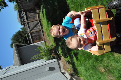 They LOVE being pulled around in the little red wagon